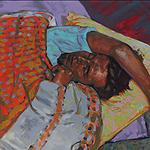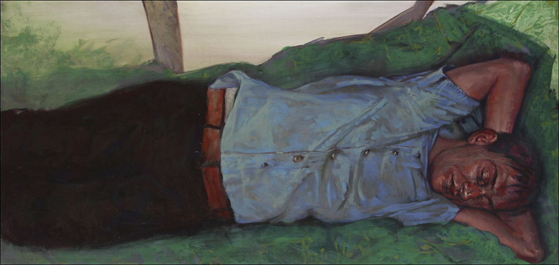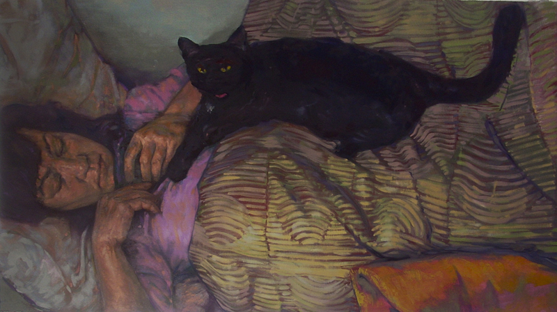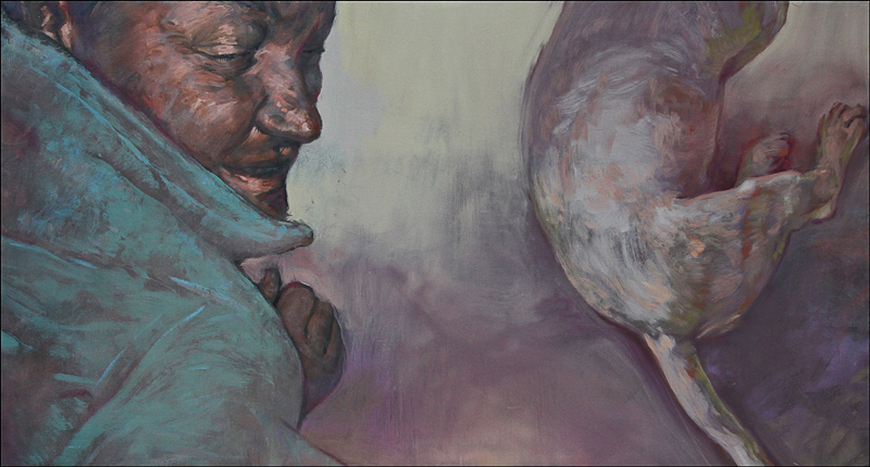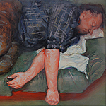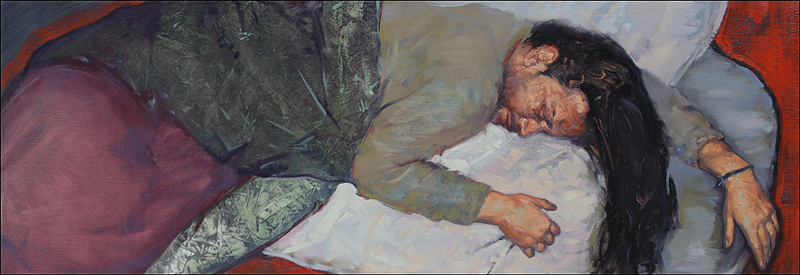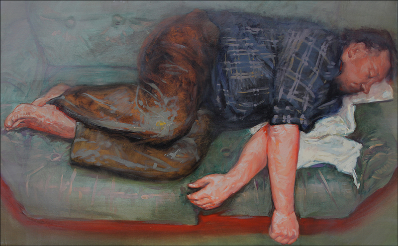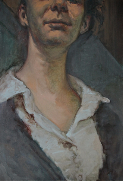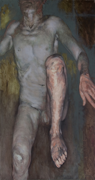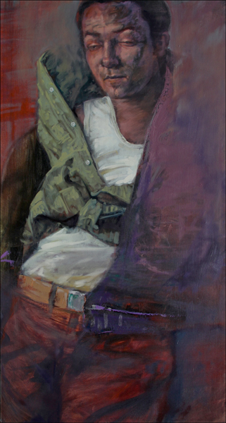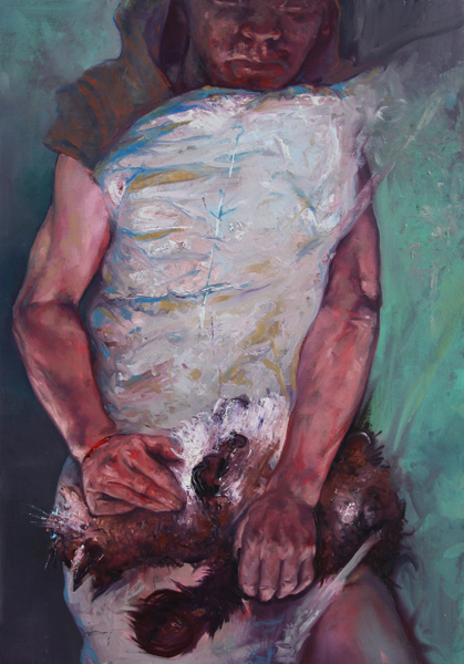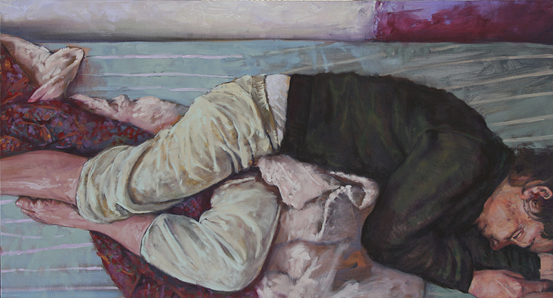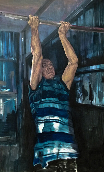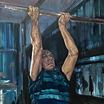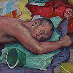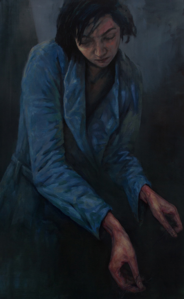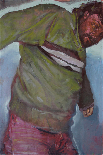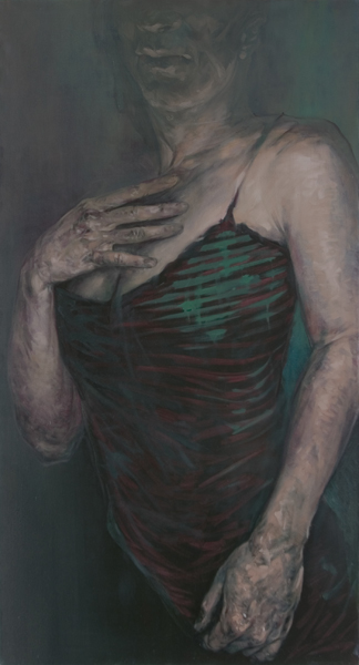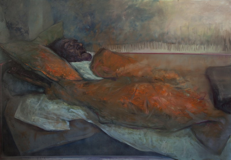 EMOTIONAL BLACKMAIL, Institute of Contemporary Art - Dunaújváros, 2015 Only a moment of uncertainty perceived, or the uncertainty of a snapshot. We're there or not, the artist and audience – could it affect any process? Will the model change its form if its taken out from the environment in which its familiar with? Will it cause different impressions if – of course on only one painting – it gets maimed or got placed in another demented life situation? Betuker portraits, nudes record daily moments that could seem a little banal in many cases: a neighbor look-a-like person for example a young woman lying in the bath with cotton balls on her eyes or a man at work. But sometimes we can see absurd situations on canvases beside the realistically depicted scenes – which can make us constantly disappointed and able to keep us restless.